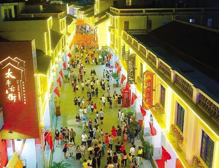 20:30 喷泉过后,一起逛夜景的太平古街,这里不仅靠近喷泉,夜景美,重要的是美食众多,吃货的你一定可以一饱口福(客家特色的猪脚米丝、客家糍粑、萝卜粄,上海生煎,重庆小面、酸辣粉,台湾饭团、湖南骑士小龙虾……这些令人垂涎的小吃美食,统统可在太平古街内找到)