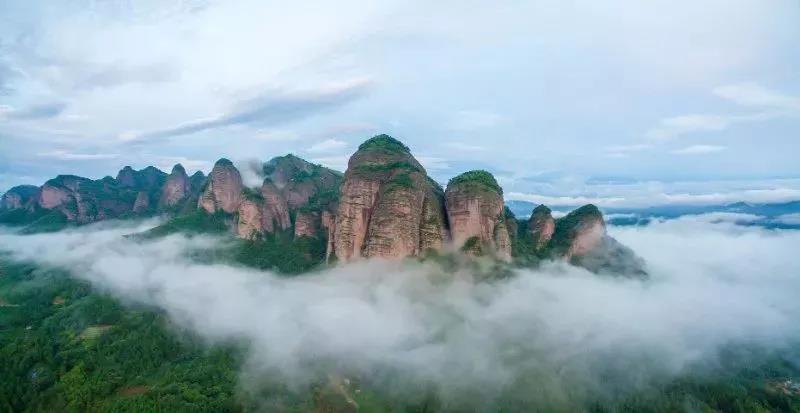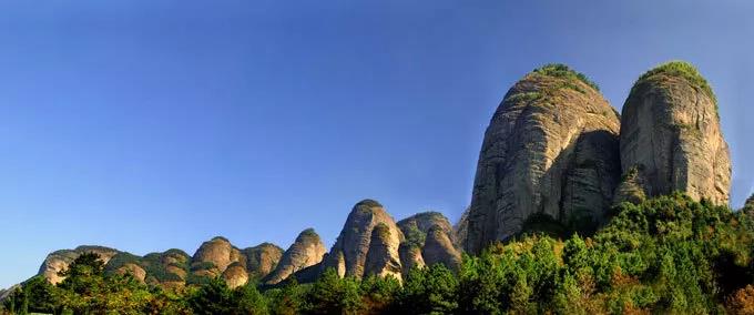 10:30 到达气势雄伟的龙南武当山,石峰属丹霞地貌,岩石呈赭色,表面圆润光滑,或壁立万仞,形似玉笋;或如姐妹相依,母子相抱,或如驼峰,或如牛角,或如堡垒,瑰丽多姿;