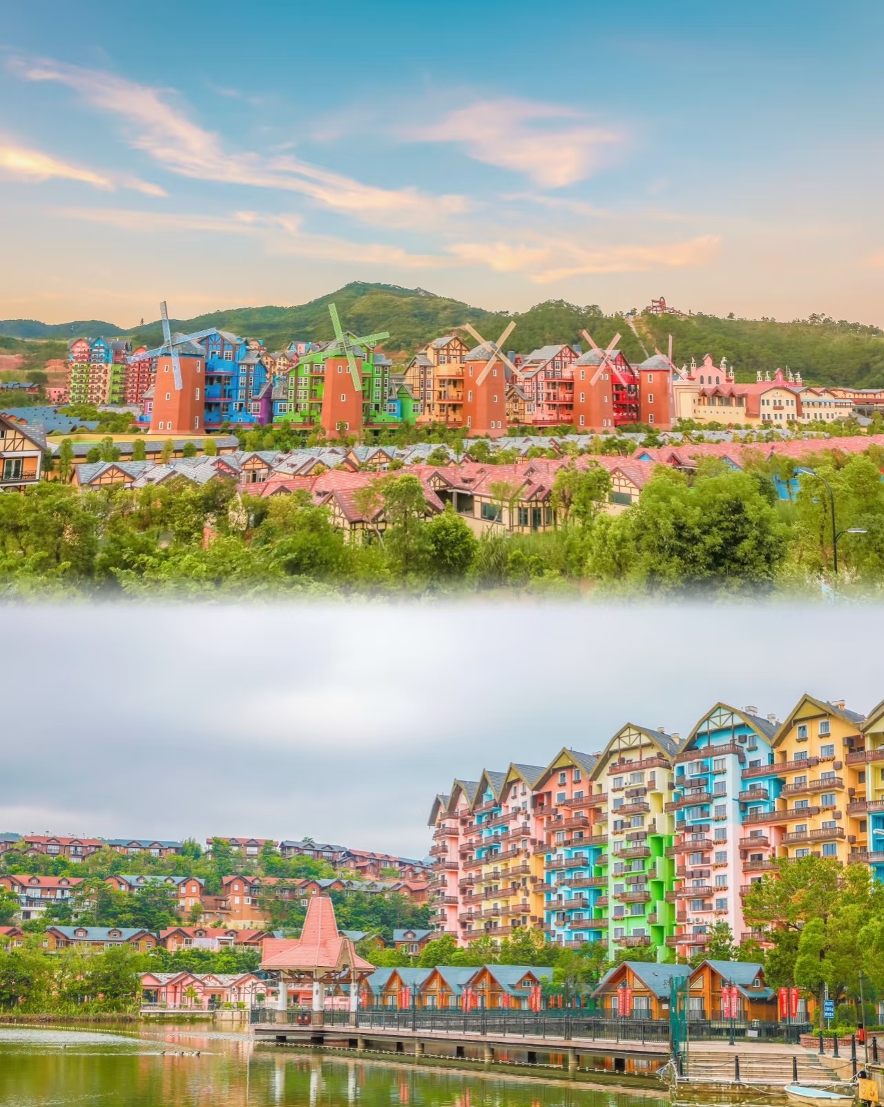 2、万绿湖镜花缘+女儿国表演40元,巴伐利亚大门票+温泉套票98元/人(领队车上收取)