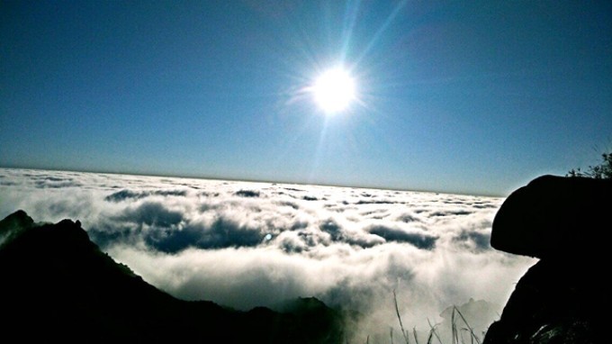 14:00 到达山顶,见到藏于云层中的阿婆髻,运气好的话,可以看到云海,西游记神仙乘云驾雾的感觉呈现你眼前。山顶可以清晰地看到对面的羊屎顶、狗头石、拳头石。