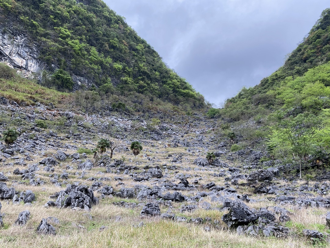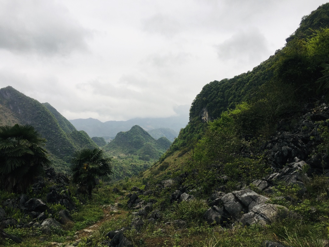 路途中,经过几个废弃村庄,有壮观的喀斯特石林,有高高的芒草掩盖得严严实实的小路。