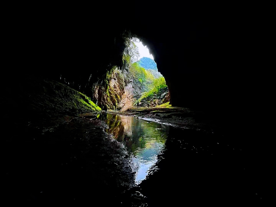 它的入水口在群峰那头,出水口位于出水岩小组,在黑暗的地下盘旋了二十多公里,只有极少数勇者方能领略黑暗深处的壮美。