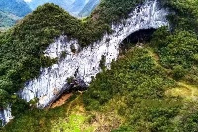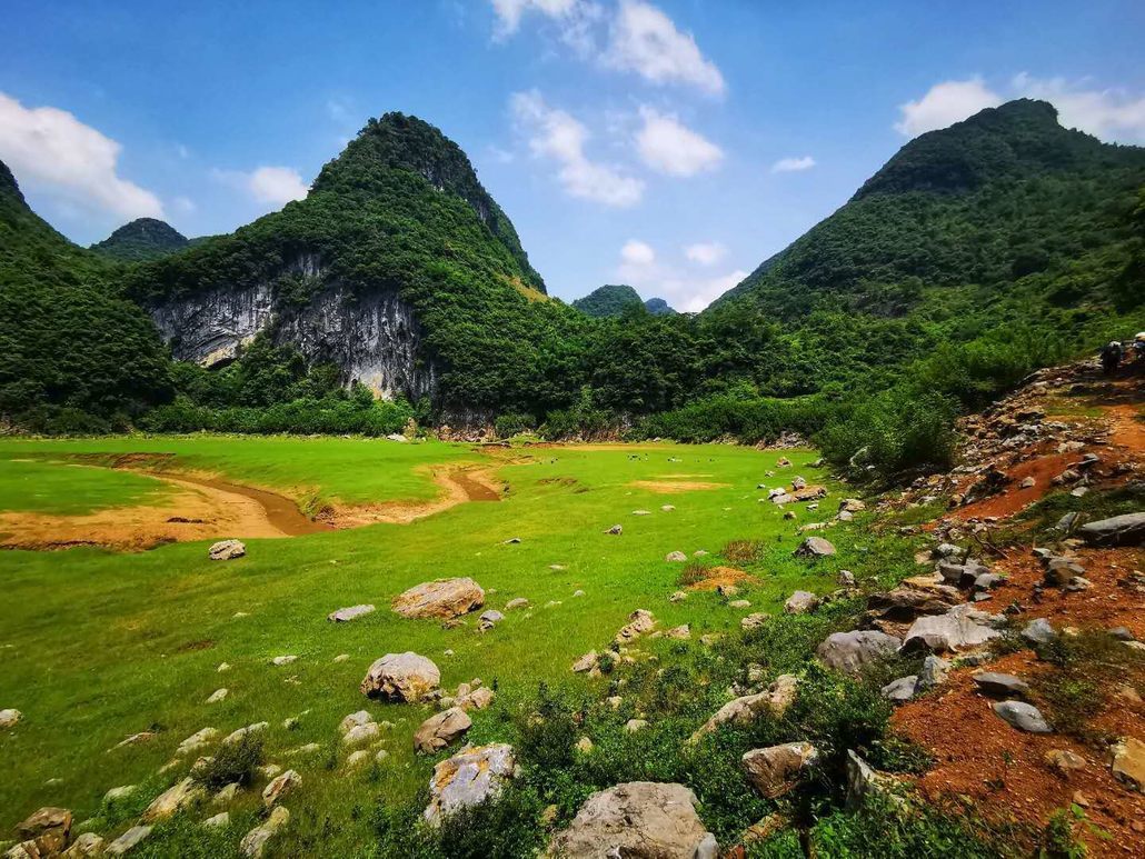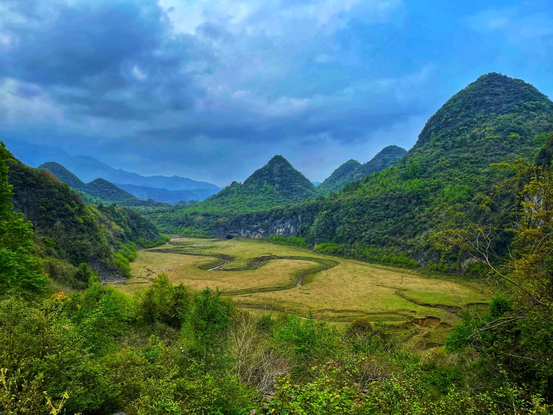 它丝带般在喀斯特峰林之间缠绕,还能欣赏到罕见的特大天坑-饭甑洞天坑,风景秀丽而原始。