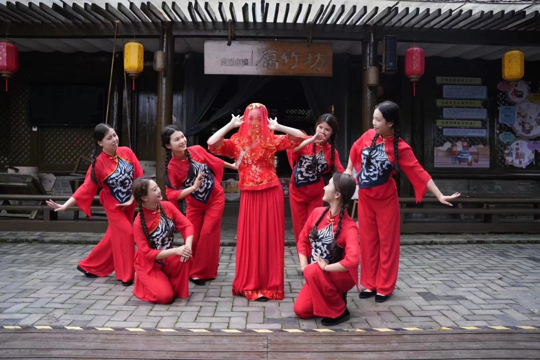 织多彩梦、约定终身月色渐渐升起,客家小伙唱起了客家情歌,妙龄 少女随着歌声在月色下的翩翩起舞,好似夜空中的精灵。他们彼此互诉爱慕之意,定格在月辉之下,情意绵长。