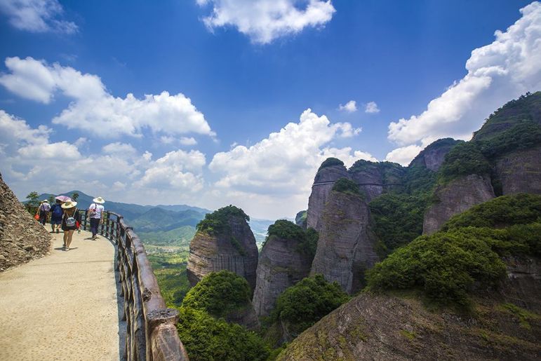 11:30 到达气势雄伟的龙南武当山,石峰属丹霞地貌,岩石呈赭色,表面圆润光滑,或壁立万仞,形似玉笋;或如姐妹相依,母子相抱,或如驼峰,或如牛角,或如堡垒,瑰丽多姿(午餐领队会预留半小时左右,可以吃自备的干粮,或者武当山门口有大排档,士多店等)