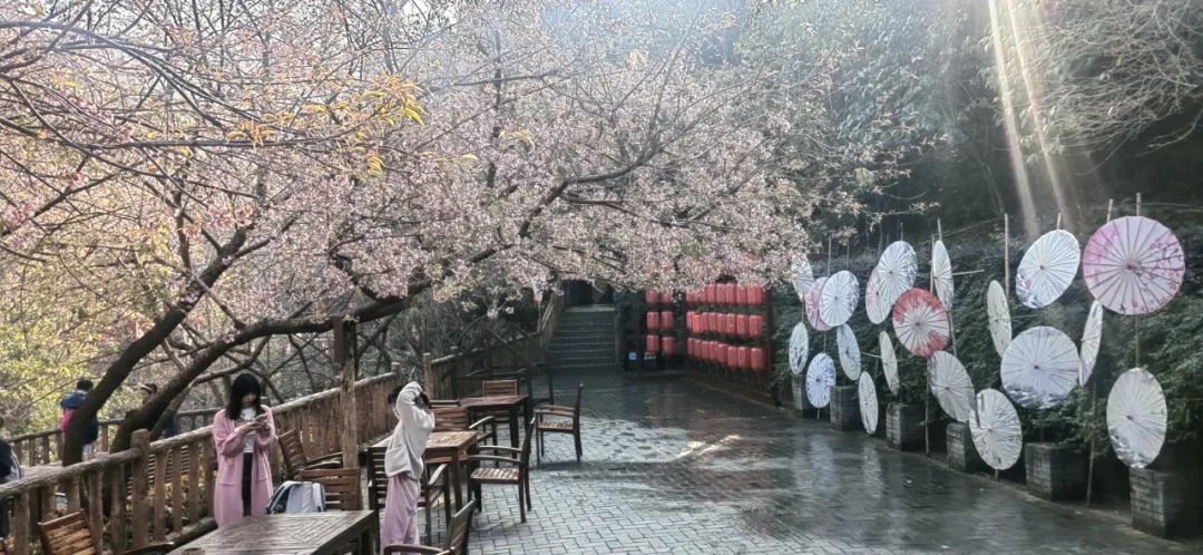 依山傍水,屋檐下盛开,显得更有意境(2月实拍)