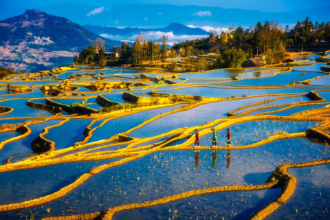 亮点:多依树日出+蓝色梯田+阿者科村蘑菇房+梯田轻徒步+屏边大围山,自然与人文结合!