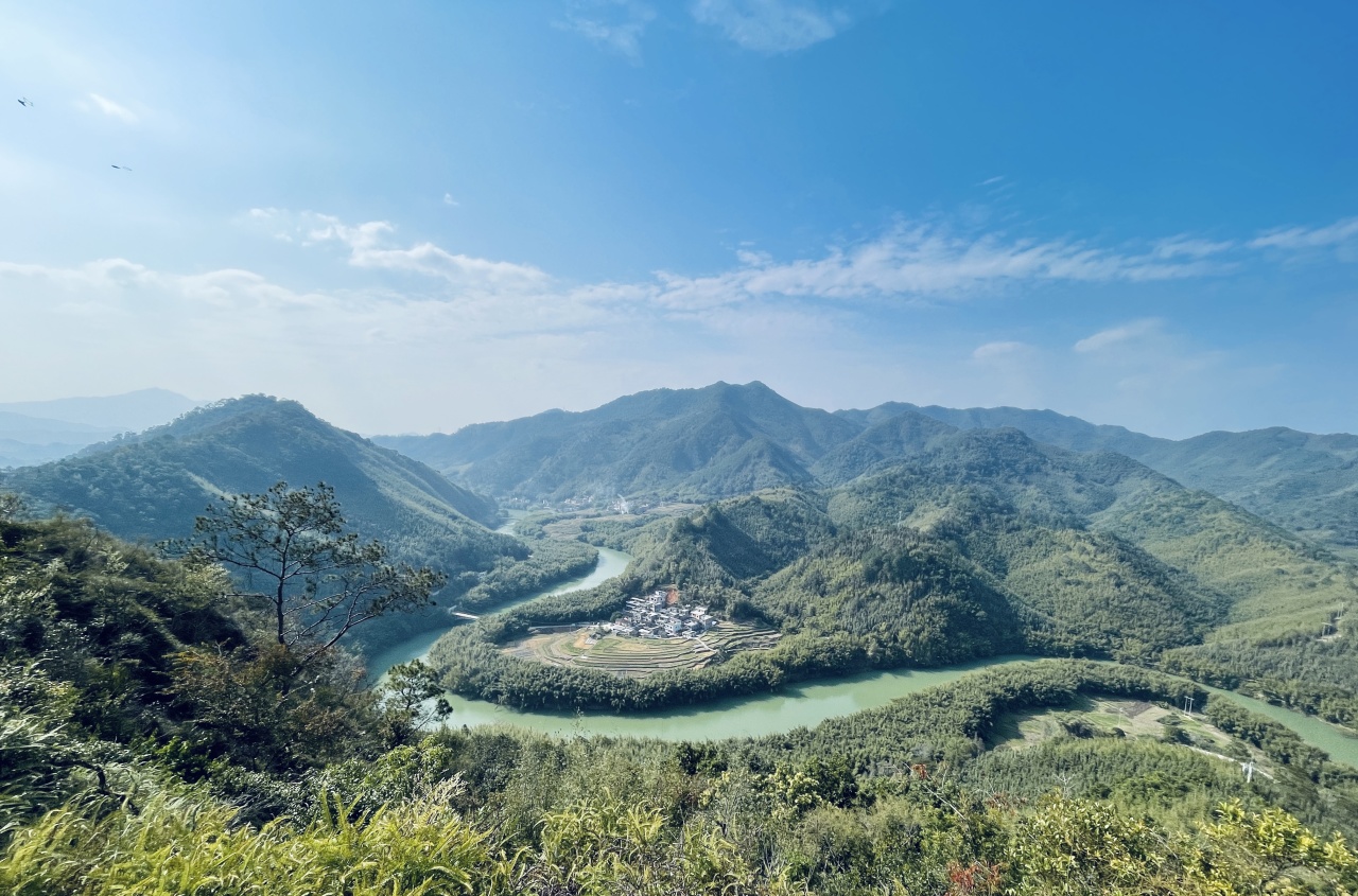 14:30 山顶风光无限,打卡拍照俯瞰古水河的九曲十八弯景色;(如遇天气不好,居于安全则不上山)