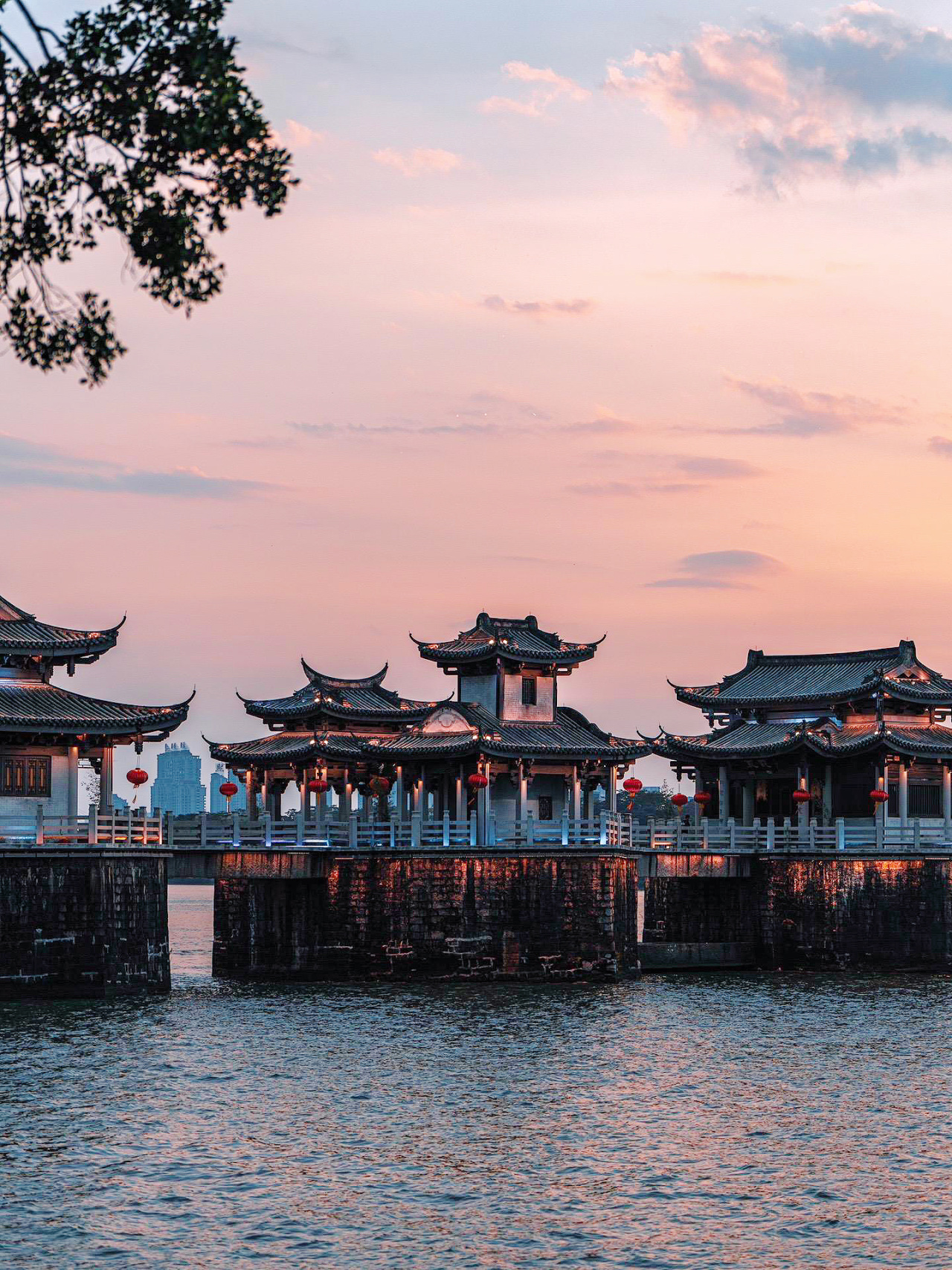 灯火璀璨,亭阁交辉,宛如一道多彩琉璃横卧韩江。