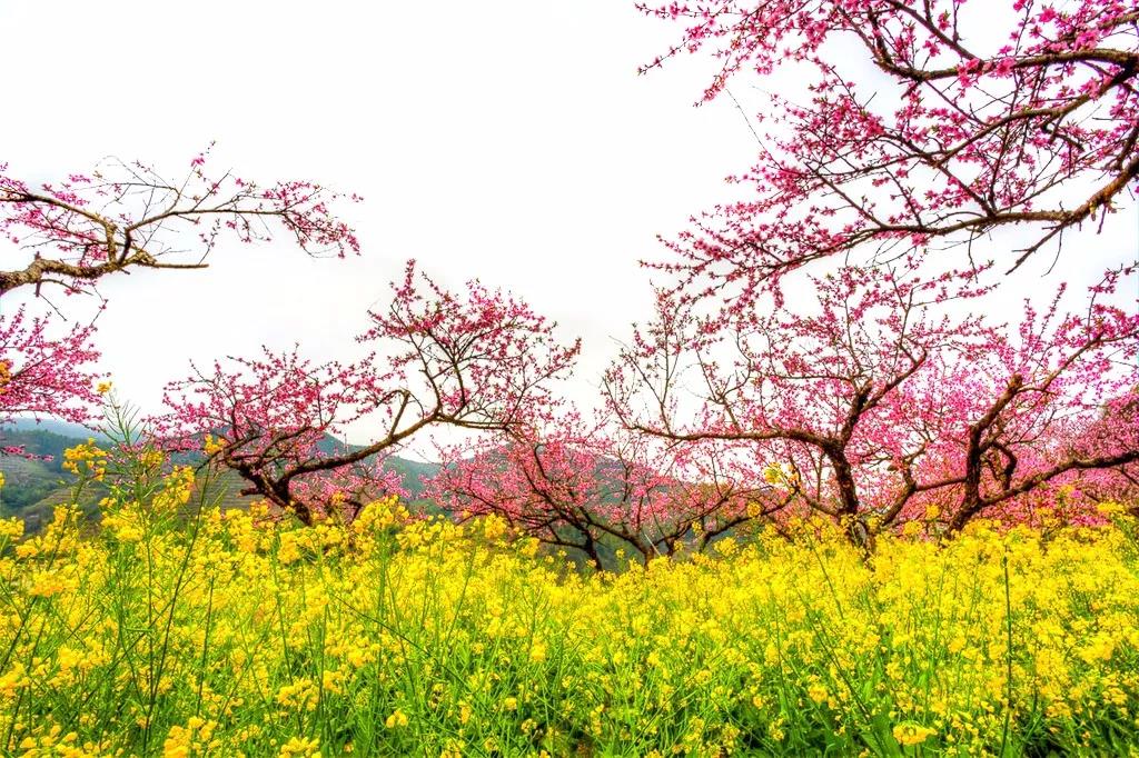 乐昌市九峰花果山六万亩桃花、李花、油菜花争相怒放。人面桃花相映红,是桃花盛开千里画廊,李花怒放一树白,百里锦簇,沉醉在九峰山,徜徉在花的海洋。让我们一起走进九峰桃花源。