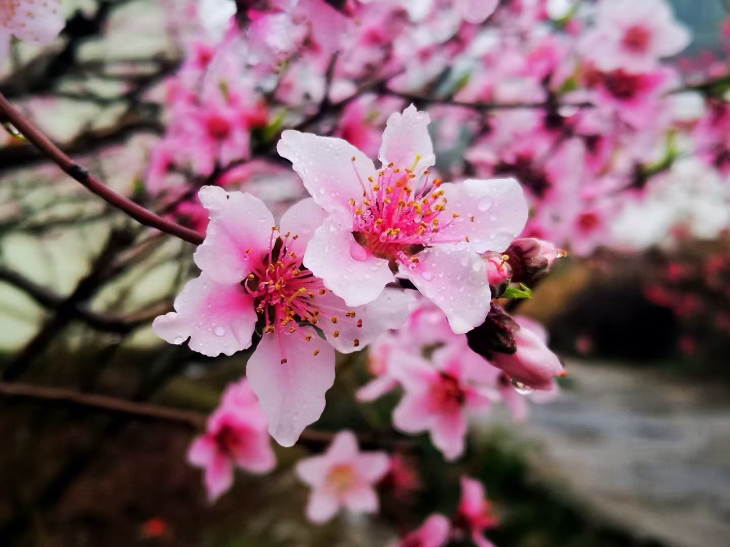 1、桃李芬芳满山花色;带你追梦身边的“桃花源”