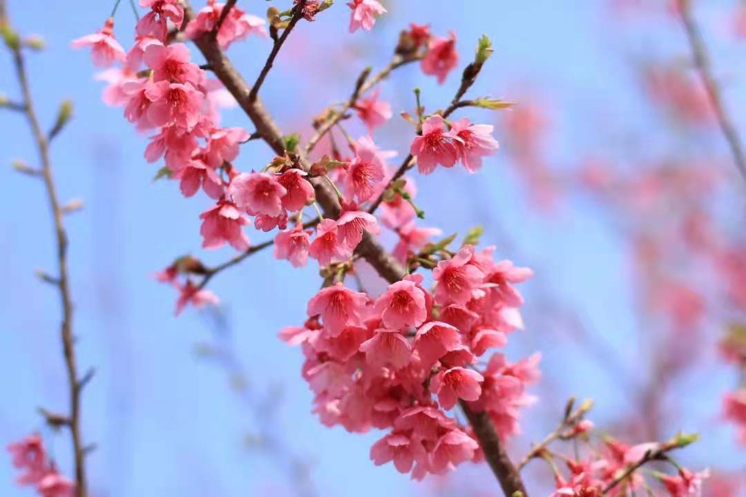 09:30抵达从化天适樱花,领队购票进入景区,开始拍摄不同的花,这里种植中国红、广州樱、福禄寿、貂蝉、小乔等十余个品种数万株樱花;