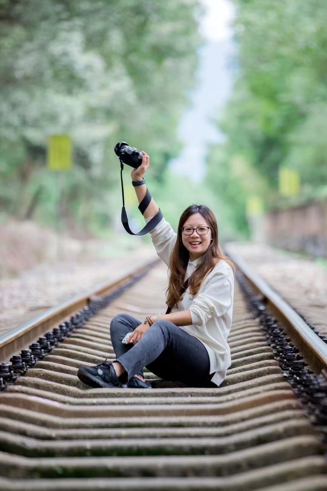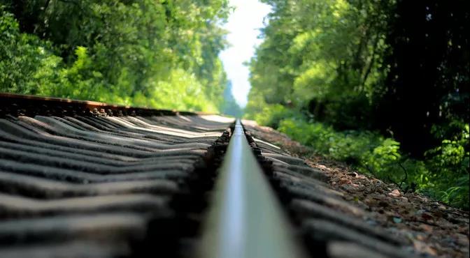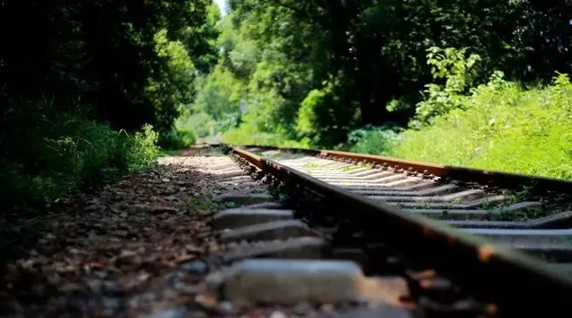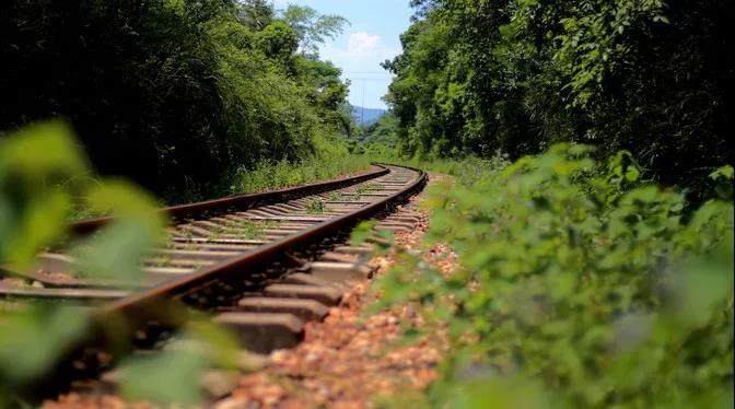 铁路两旁郁郁葱葱的绿树,