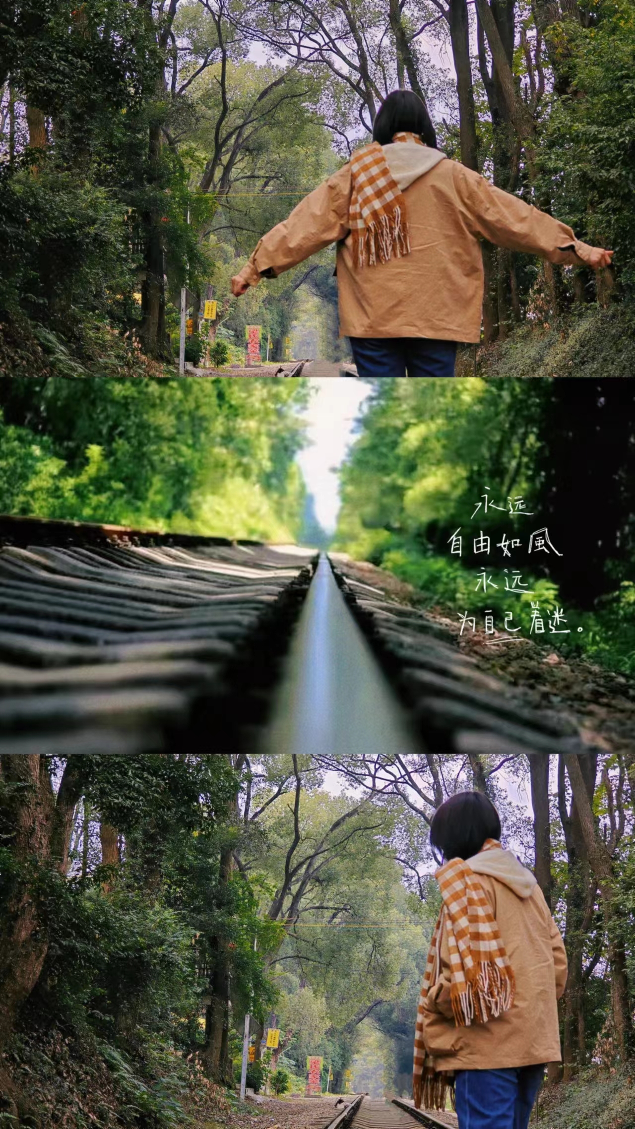 在笔直的铁路上空编织成仿佛能穿越时空的隧道