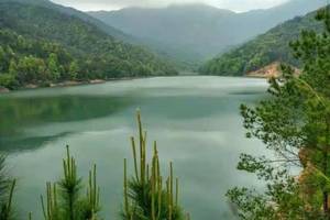 从半山腰看下去能看到上山路过的水库,