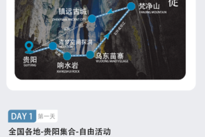 大家根据出发地的高铁动车/航班时间抵达【贵阳龙洞堡机场、贵阳北站、贵阳东站、贵阳站】。我们提供24小时接机/接站服务。车次时间不限,随到随接,早到早玩。