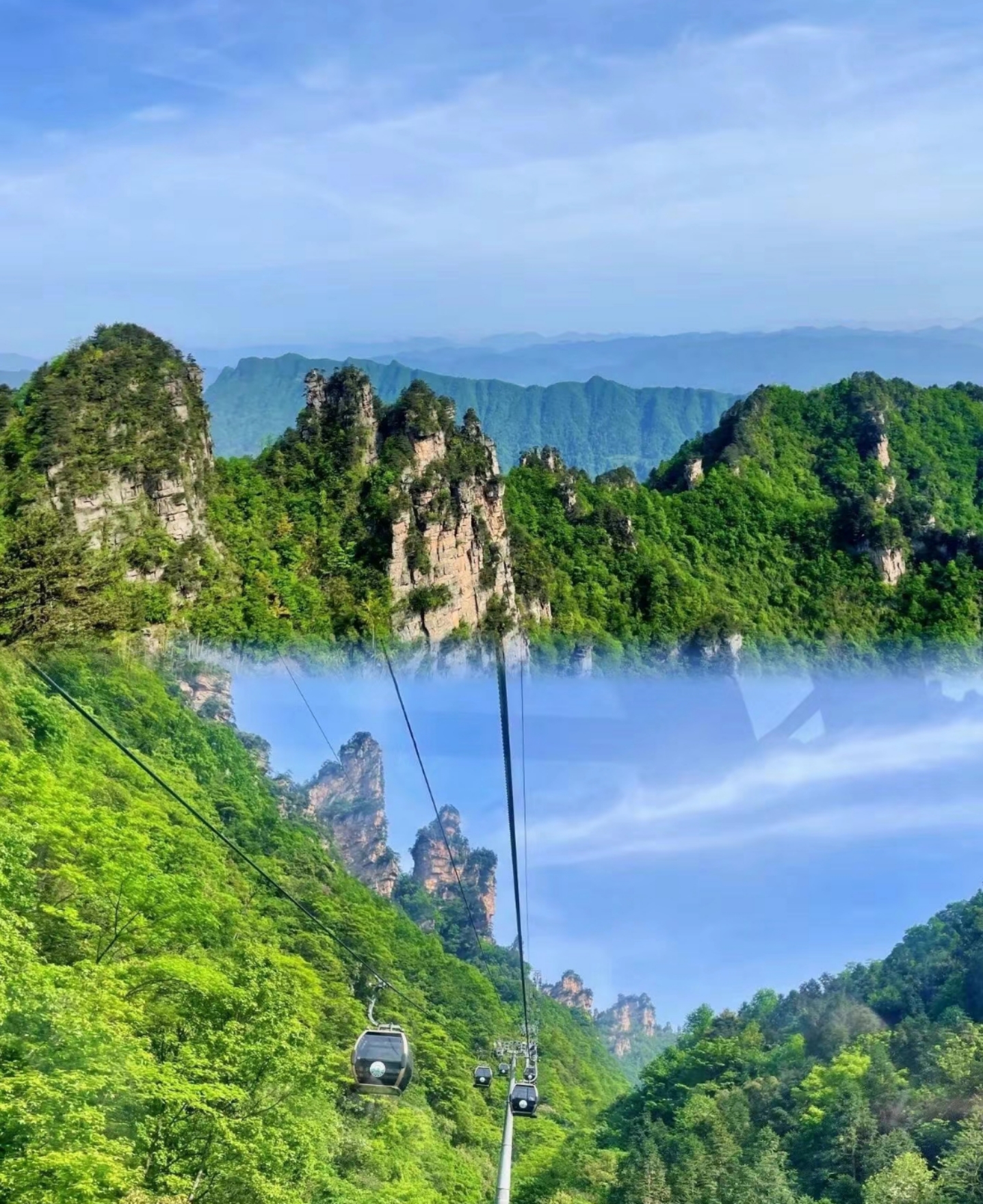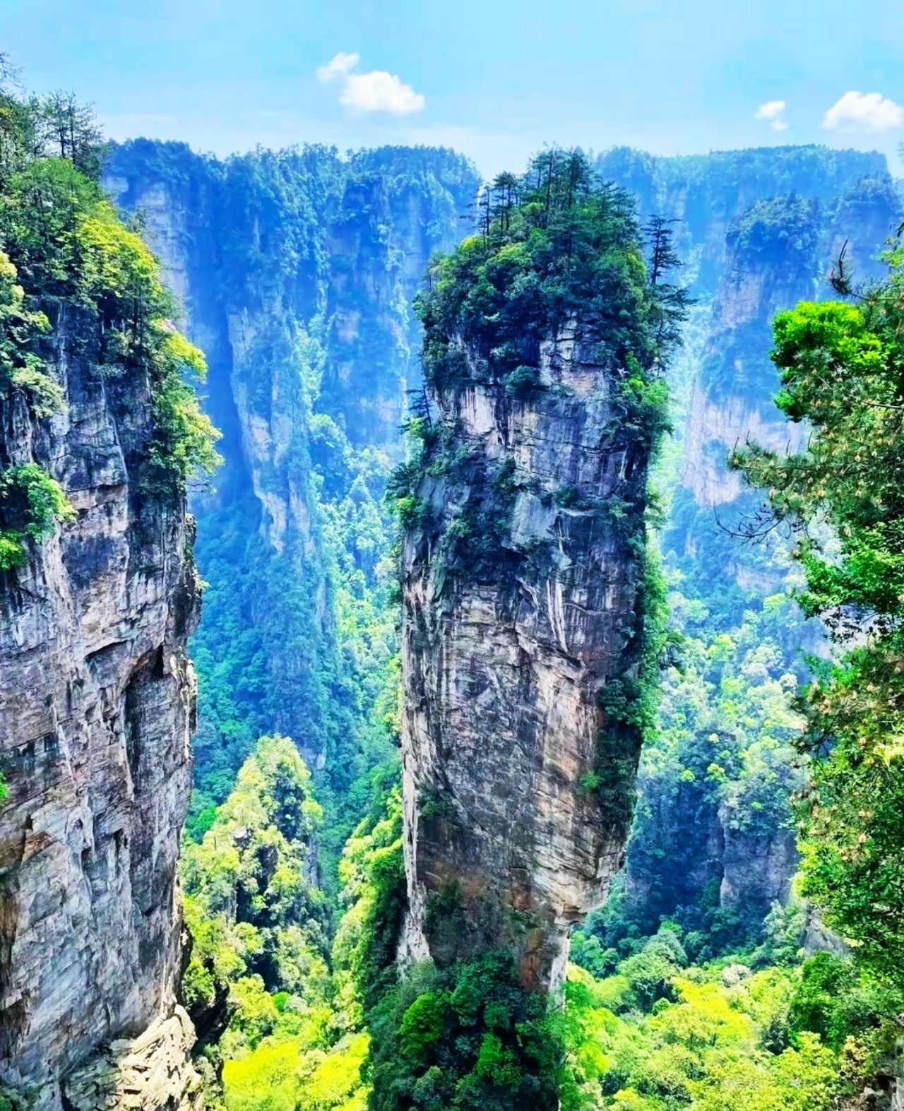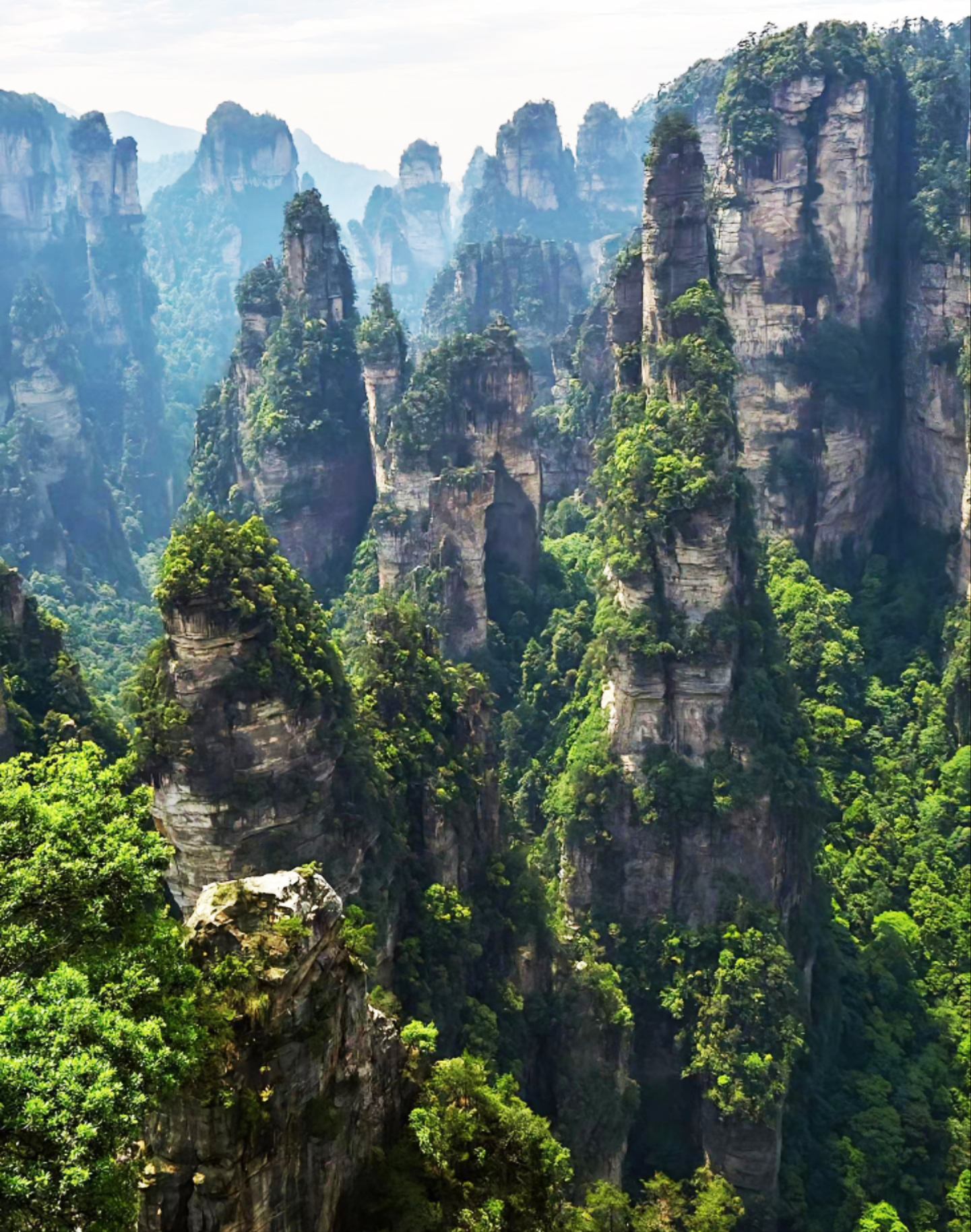 三千多座造型奇异的山峰拔地而起,满目青翠。峰谷间云雾缭绕,随处可见飞瀑溪水,风光美不胜收。每一幅照片单独拿出来,都是大片!