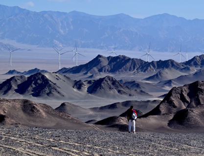 早餐之后来到水墨江山【黑独山】。这是一个像极了月球的地方。旅游者的乐园,摄影者的天堂。黑独山之所以独特,因为沙体是沙山表面一层黑色碎石,漫长的岁月洗礼,碎石变成一层硬壳,走过黑独山的每个人都会在这里考虑人生的尽头。它的荒凉、孤寂、冷艳能瞬间吸引到你,让人分不清是在画里还是在梦里,远处的雪山在黑色映衬之下更显明亮。
