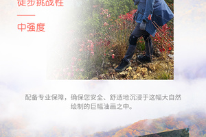 3. 本产品属于秋季产品,秋景确定时间不确定的,正常是11月份秋景,但是也有提前或延后情况,游玩时请合理对待实际景色;