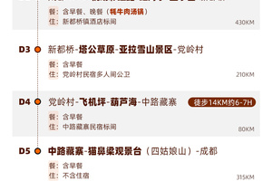 第2天:成都-S434机场彩虹路-红海子-鱼子西-新都桥(收取旅游费用总额50%的损失费)
