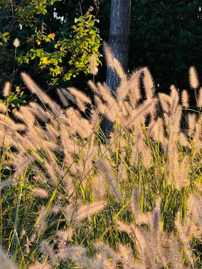 阳光洒下,狗尾草闪烁着金色的光芒