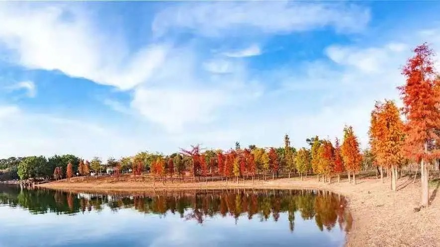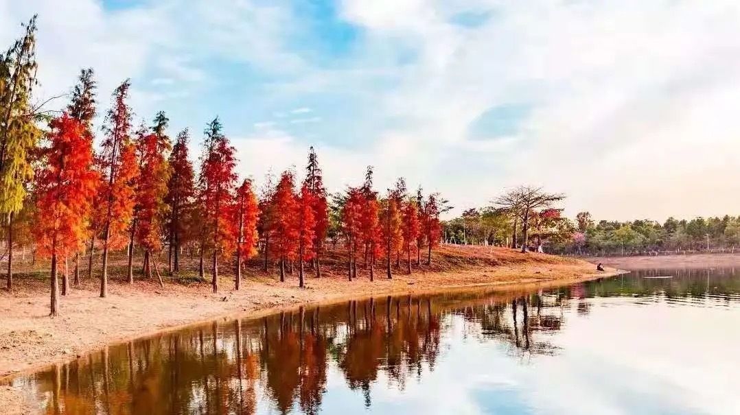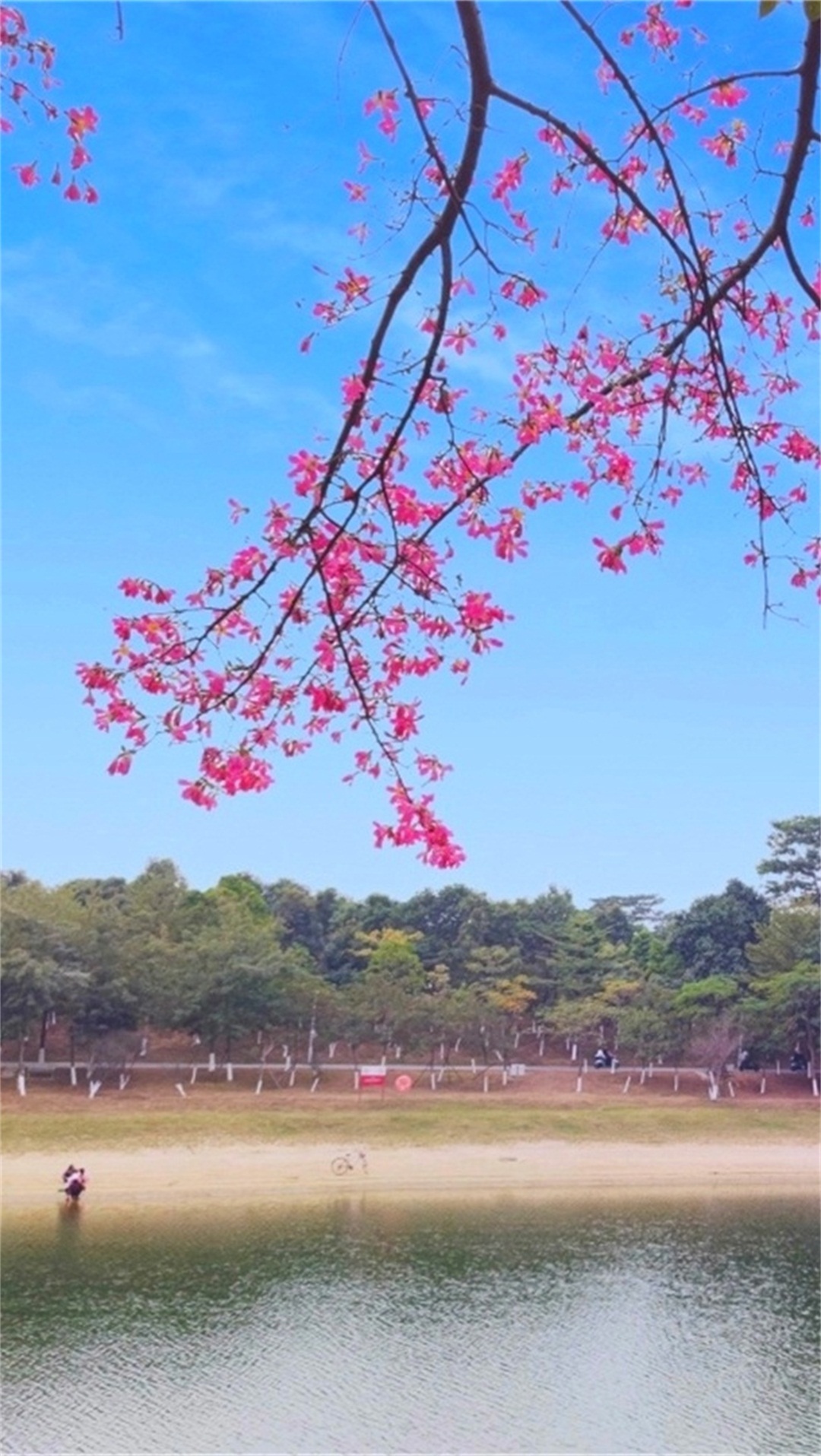 亮点1:漫步在松山湖长达5公里的环湖绿道,看异木棉、紫荆花、落羽杉争奇斗艳