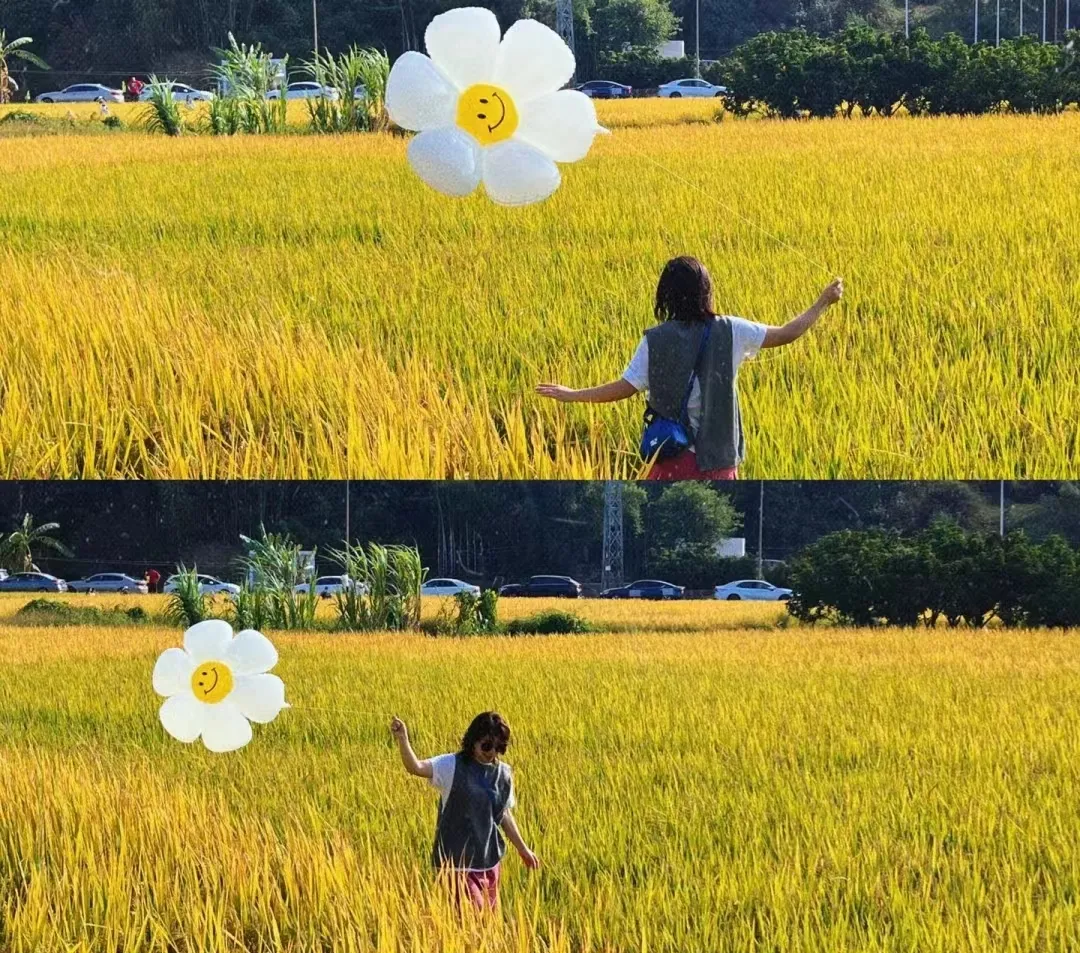 亮点3:美拍彩色稻穗拼接而成的周屋稻田画,收获大地艺术带来的感动