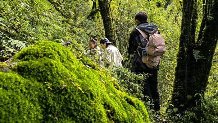 之后,我们来到【哀牢山徒步】起点,热身后,开始徒步。走进峡谷,峡谷中的幽暗神秘,肆意生长的小草树木,树枝青石上的蕨类苔藓,耳边回荡的虫鸣鸟叫,让人感觉瞬间被带入了云南虫谷。在这里徒步,大家在不断地惊叹中打卡拍摄,徒步结束后,前往哀牢山中酒店入住。