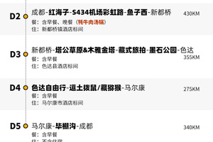 第2天:成都-红海子-S434机场彩虹路-鱼子西-新都桥(收取旅游费用总额60%的损失费)