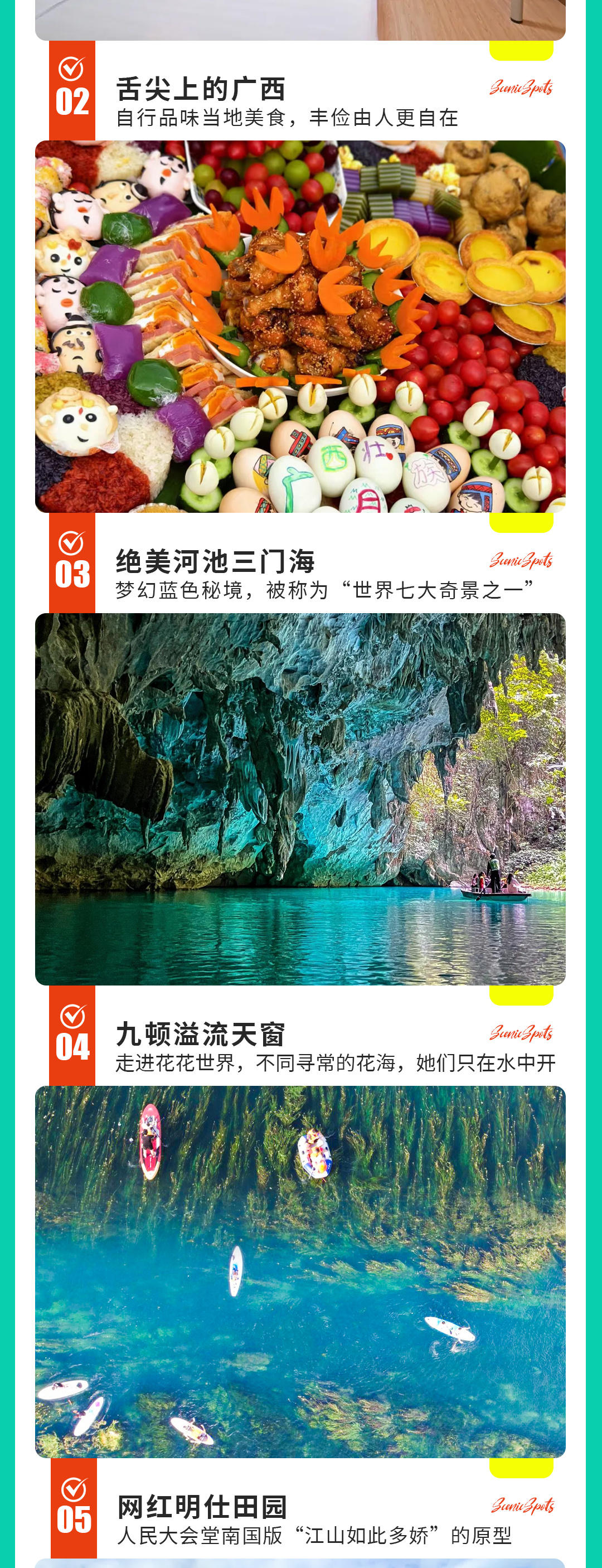 ·活动地点:广西德天瀑布、网红明仕田园、河池三门海、九顿天窗、古龙水大峡谷&地下河漂流