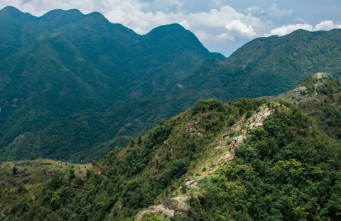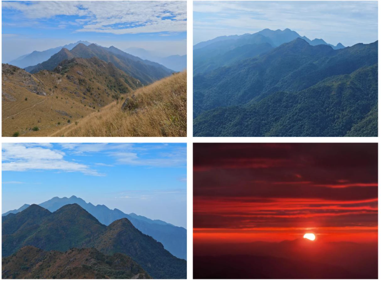 登山路径原始而充满野趣,山顶可俯瞰英德丘陵与连绵竹海,日出日落时分景色尤为壮丽。
