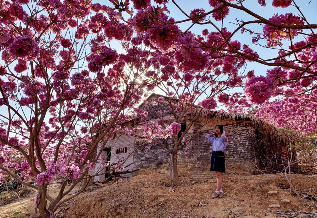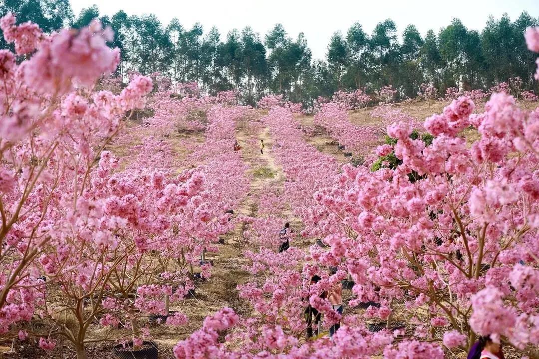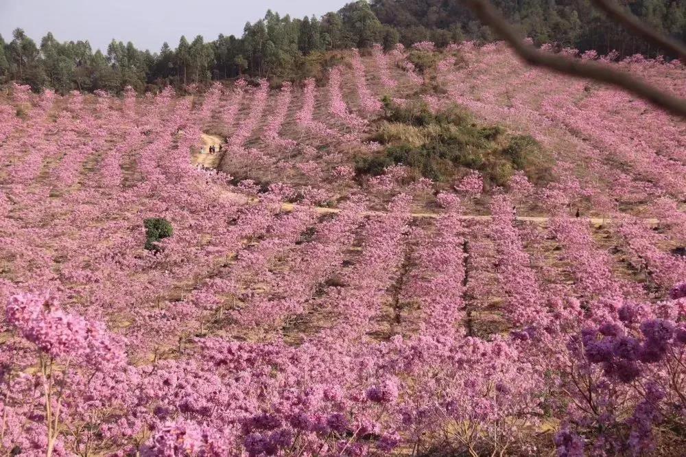 1、江门紫花风铃木,占地34万平方米,种植6000多株紫花风铃木;