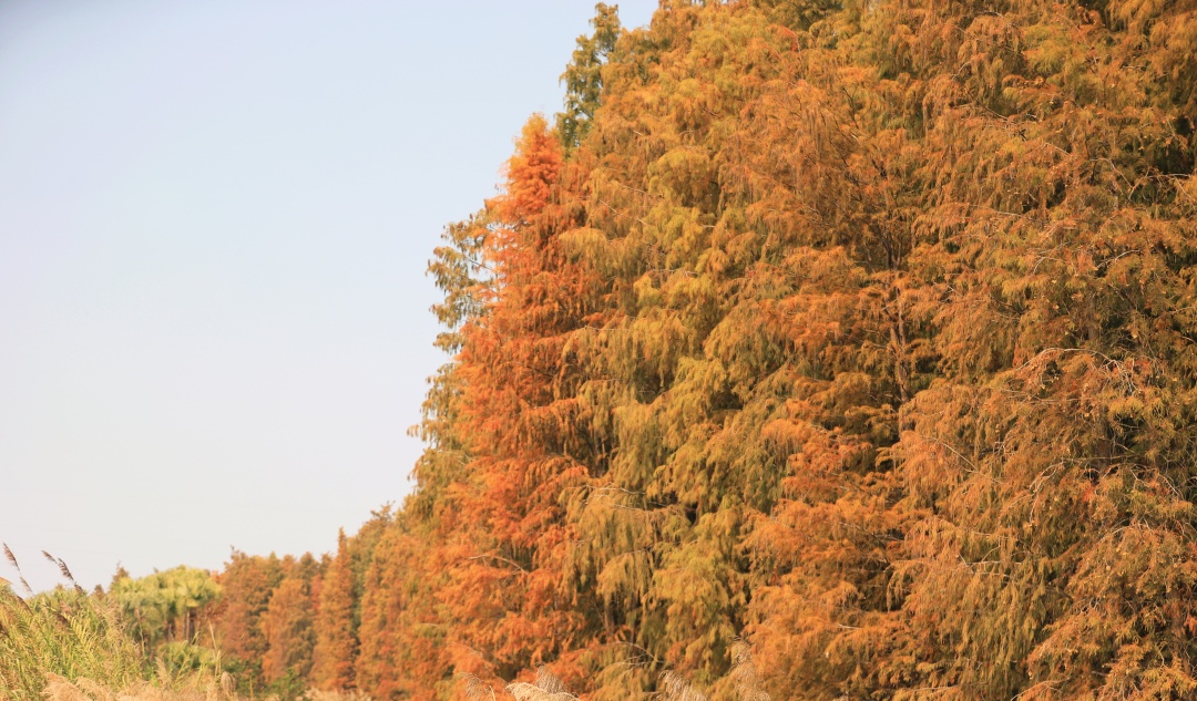 千亩葵林旁,种植成片的落羽杉,正值观赏期(下图往年实拍哦)