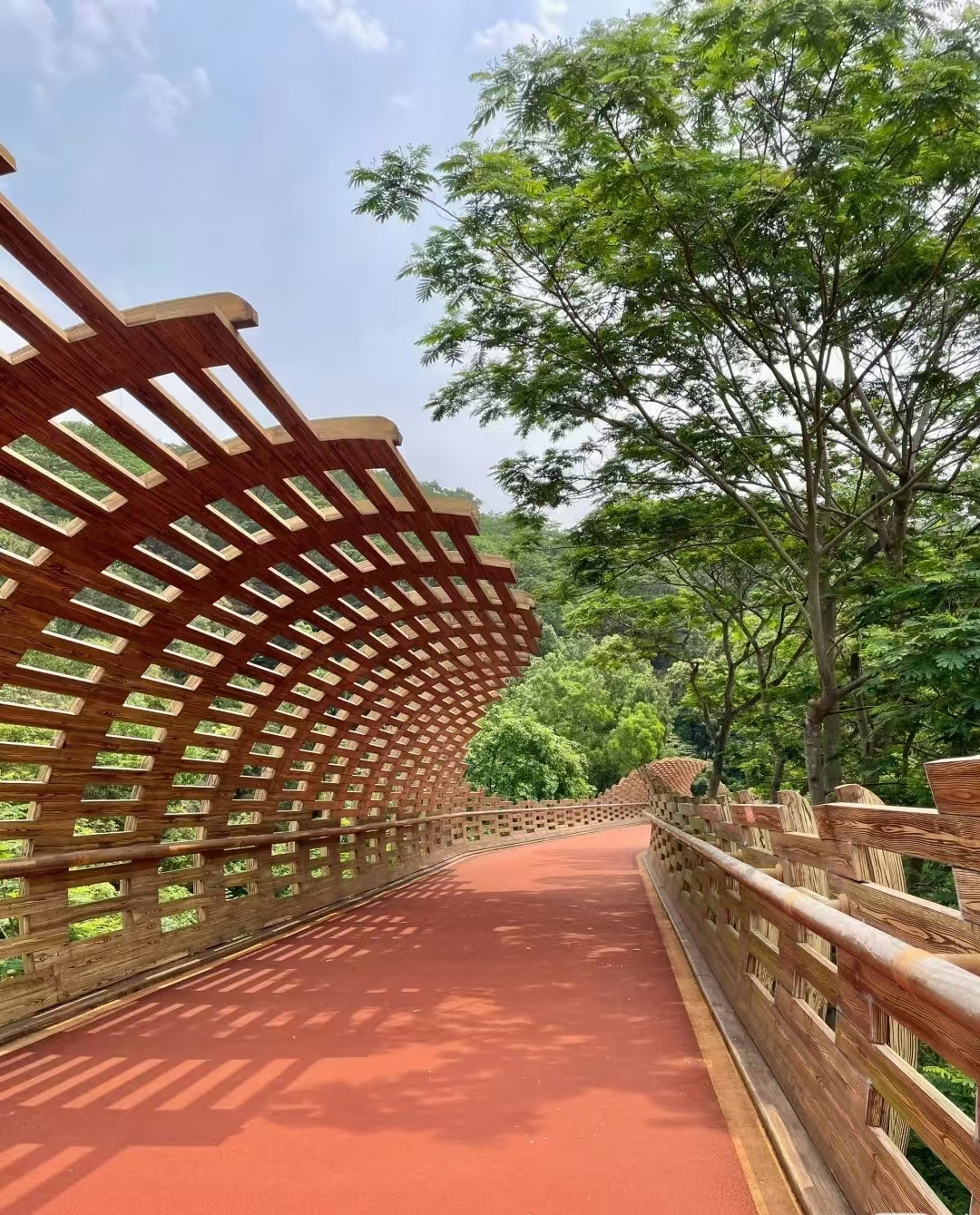 沿黄克兢大桥桥下转入,便是南坦葵林绿道。曲径通幽,小河流淌,高大的葵树遮天蔽日,细小的光块在小径上跳跃。