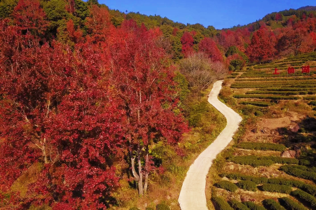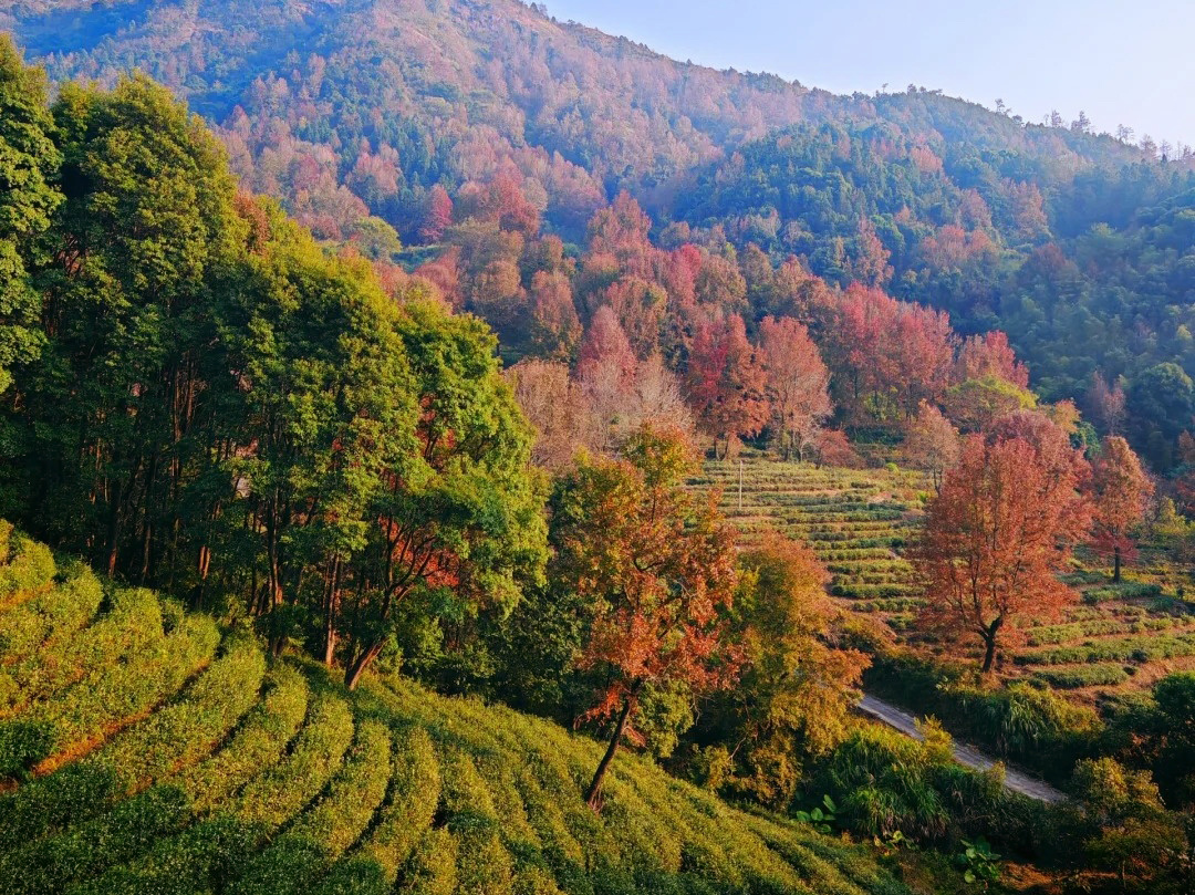 广东“无量山”:上百株枫树点缀在半山茶园之间,漫山层林尽染,枫情熠熠,抓一抓秋天的尾巴
