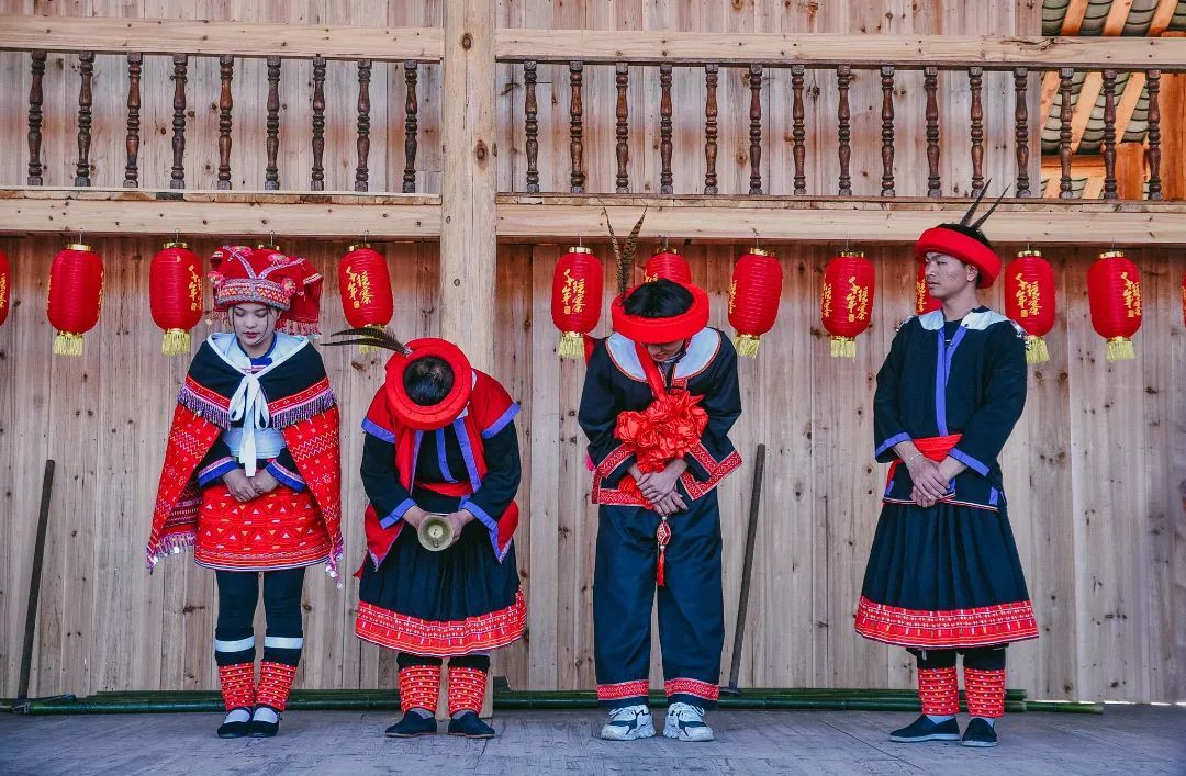 瑶族迎宾队身着盛装