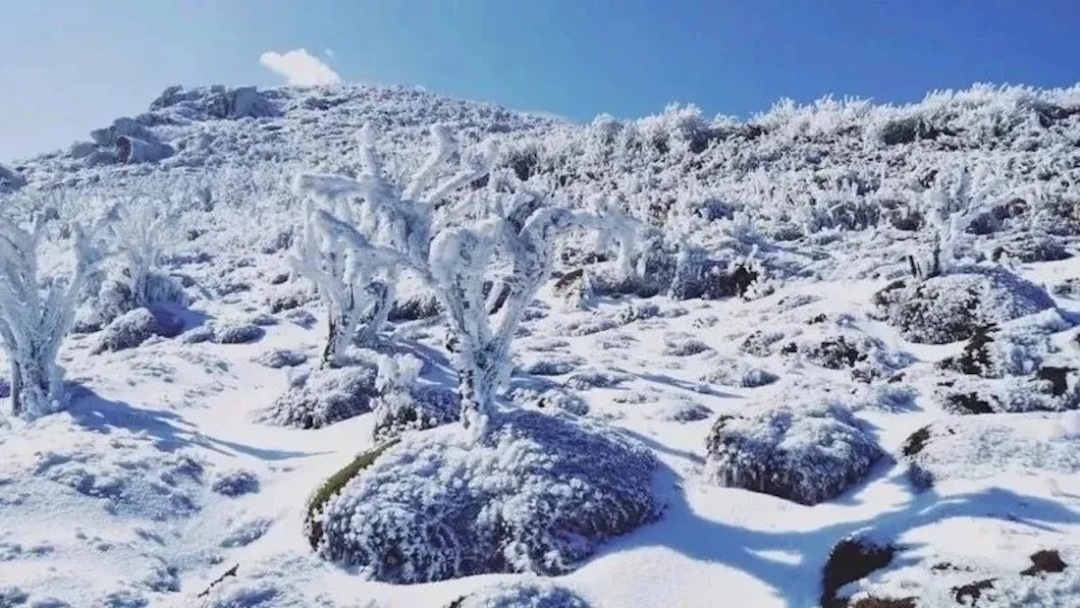 不用去东北也能看冰雪了!一脚跨两省,畅玩”南国雪乡“云冰山。冰雪雾松,云海奇观,千年苔藓,高山风车,一山四景