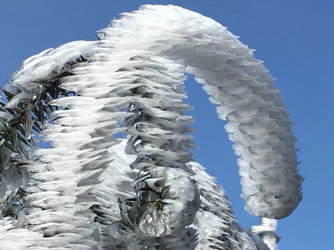 雾凇的形成需要低温高湿的空气环境,所以不一定每次出行都看到罕见的雾凇美景。按照往年经验,12月-2月期间,云冰山很大概率都是有冰雪雾松的。