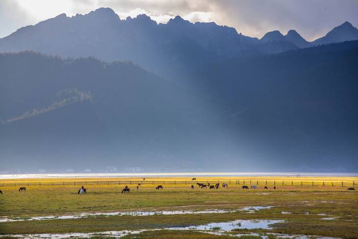 结束梅里雪山的游玩后,乘车返回【香格里拉市】途经【纳帕海观景台】(停车约15分钟可远眺纳帕海)在纳帕海观景台利用俯瞰的机位能拍出层次丰富,错落有致地排布的景观,趣味十足,值得细品。山脚的村落也别有一番风味。