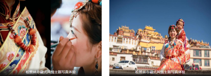 【“小布达拉宫”藏式风情主题写真体验】换上藏装同胞漂亮的传统民族服装,美美的做一个装扮,沉浸在浓郁的藏地风情的松赞林寺氛围中,化身为藏族卓玛和扎西,演绎一场藏风浓郁的“小布达拉宫”故事。