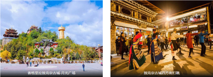 【独克宗古城】(游玩约1个小时)独克宗古城,也称“月光城”是中国保存得好的藏民居群,具有1300多年历史,是茶马古道上的重镇是马帮进藏后的首站,是滇藏茶马古道的重要枢纽。古城大龟山上有世界上最大的转经筒,用你的双手去转动经筒,为你的家人和朋友、爱人祈福。