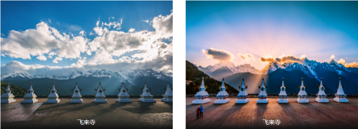 【飞来寺观景台】位于国道214路边。直面梅里雪山的主峰-卡瓦格博峰,视野开阔,加上此处为滇藏线云南进入西藏的最后一站,所以此处住宿和用餐相对其他的观景台会更便利,观山拍摄也是经典的机位。