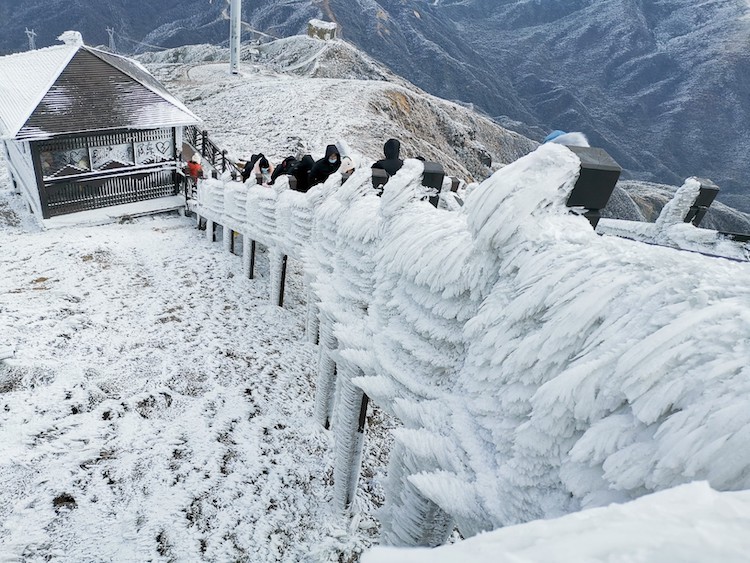 云冰山的冬天,有着南方罕见而迷人的冰雪景观,草木披上一层冰霜,伊然一派北国的风光。