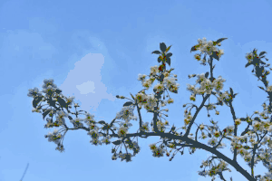 花香鸟语,蝶舞蜂鸣,满眼春光让人陶醉。蓝天白云的映衬之下,花不醉人人自醉。