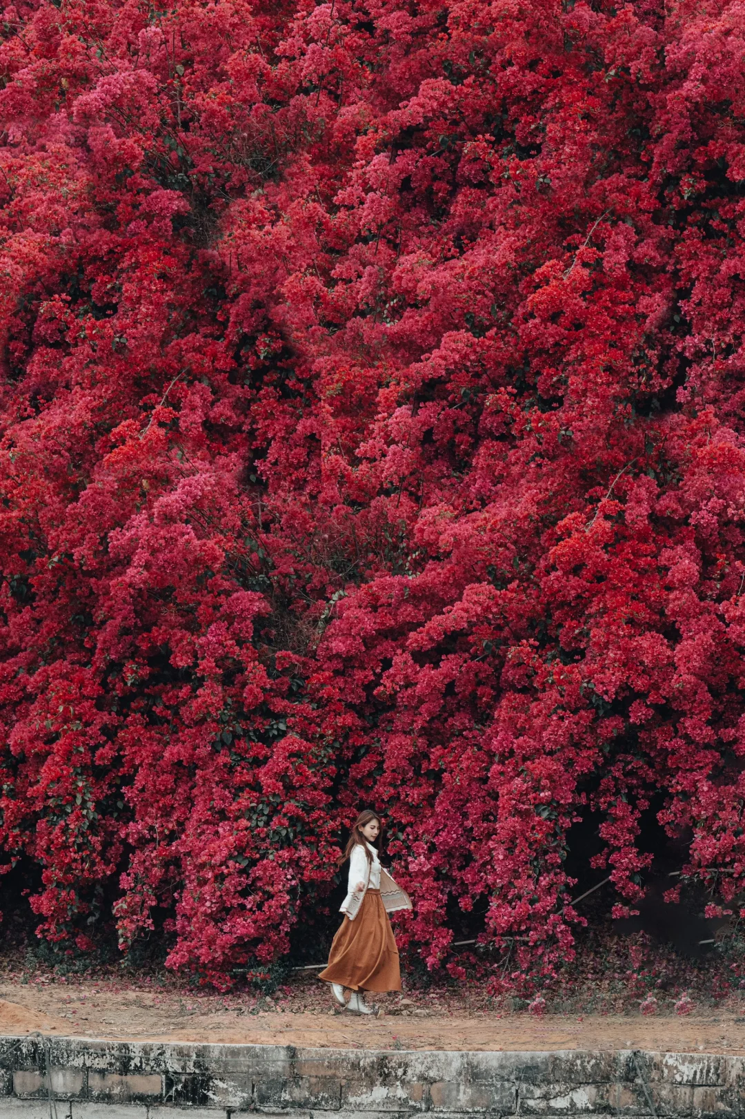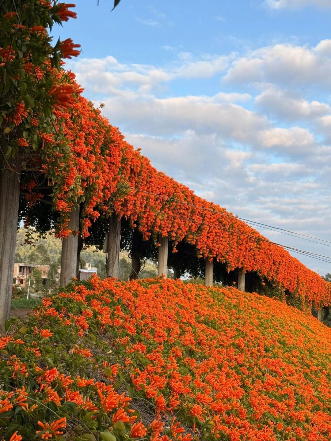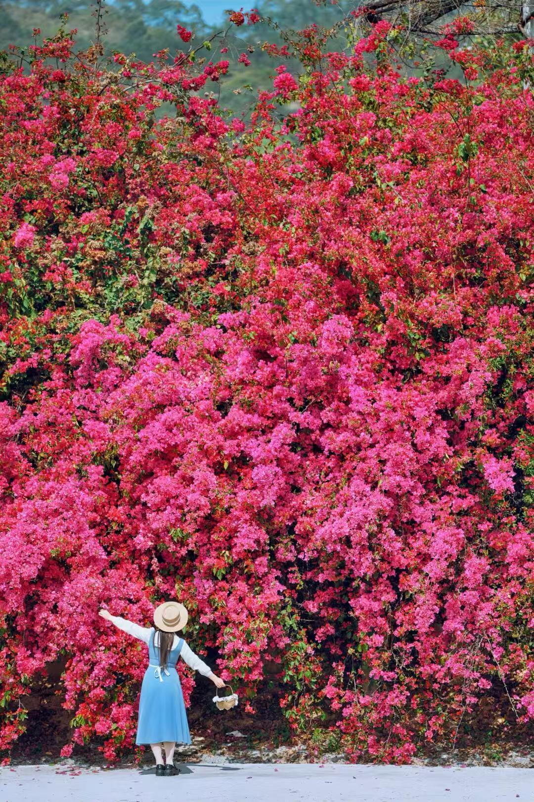 远远望去,上百米长数米高的三角梅