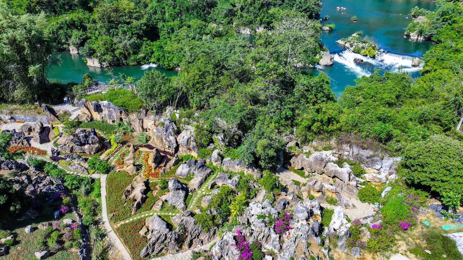 浩坤湖是凌云地区最大的一片水面,两岸山奇崖秀,丰水期里湖面宽阔,水质清澈。岛屿交错,水天一色。景区内还有几十座山峰紧紧夹携着一湖碧水,令人陶醉