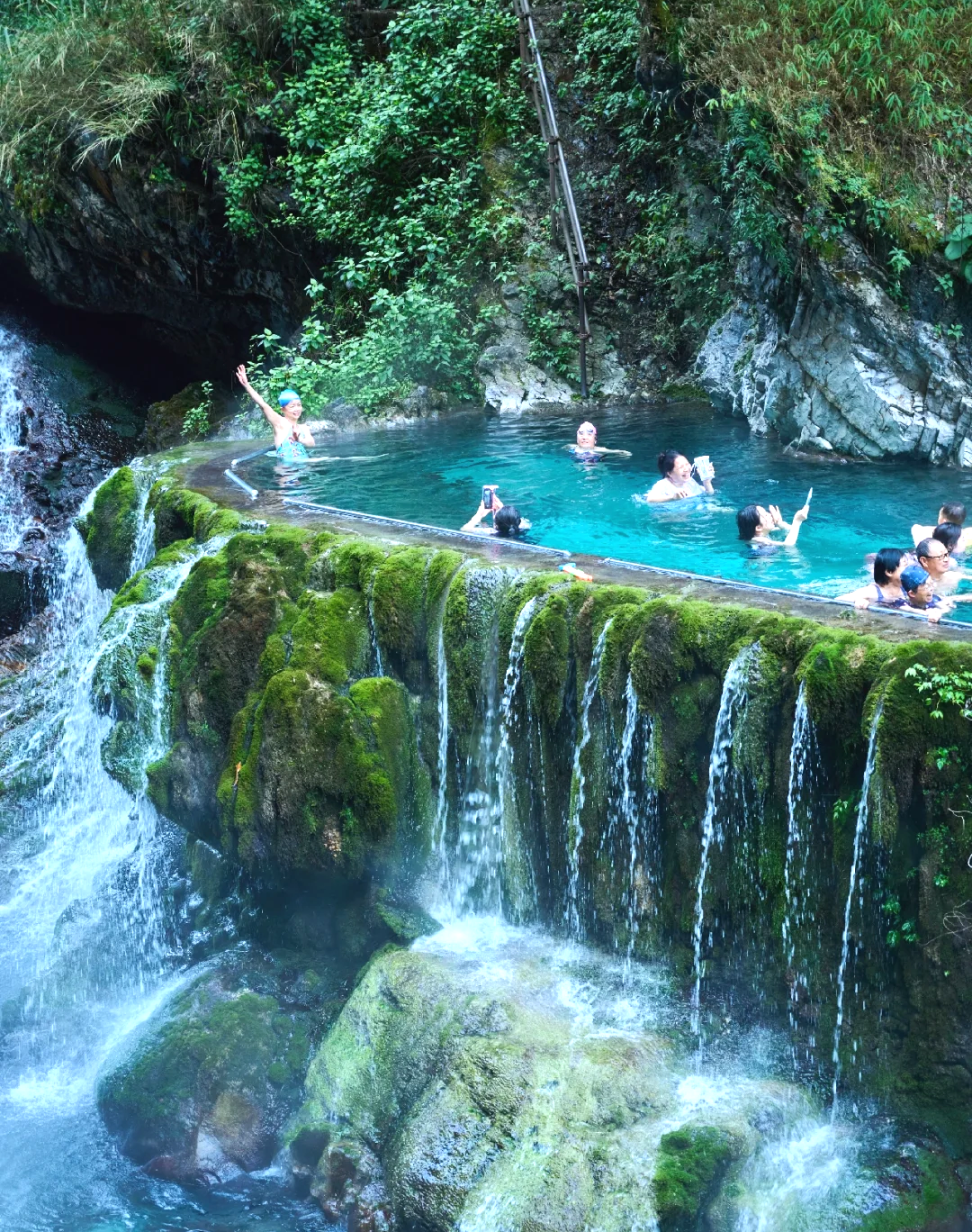 随后乘车前往【螺髻99里温泉瀑布】,这里是世界最大的温泉瀑布群,也是央视认证的“中国最美温泉”。数十个天然泉眼从悬崖峭壁上飞流而下,形成宽达200多米的瀑布群。换上泳衣,直接在瀑布下冲洗,又或者在观景台上可以拍到壮观的瀑布全景,烟雾缭绕宛如仙境。