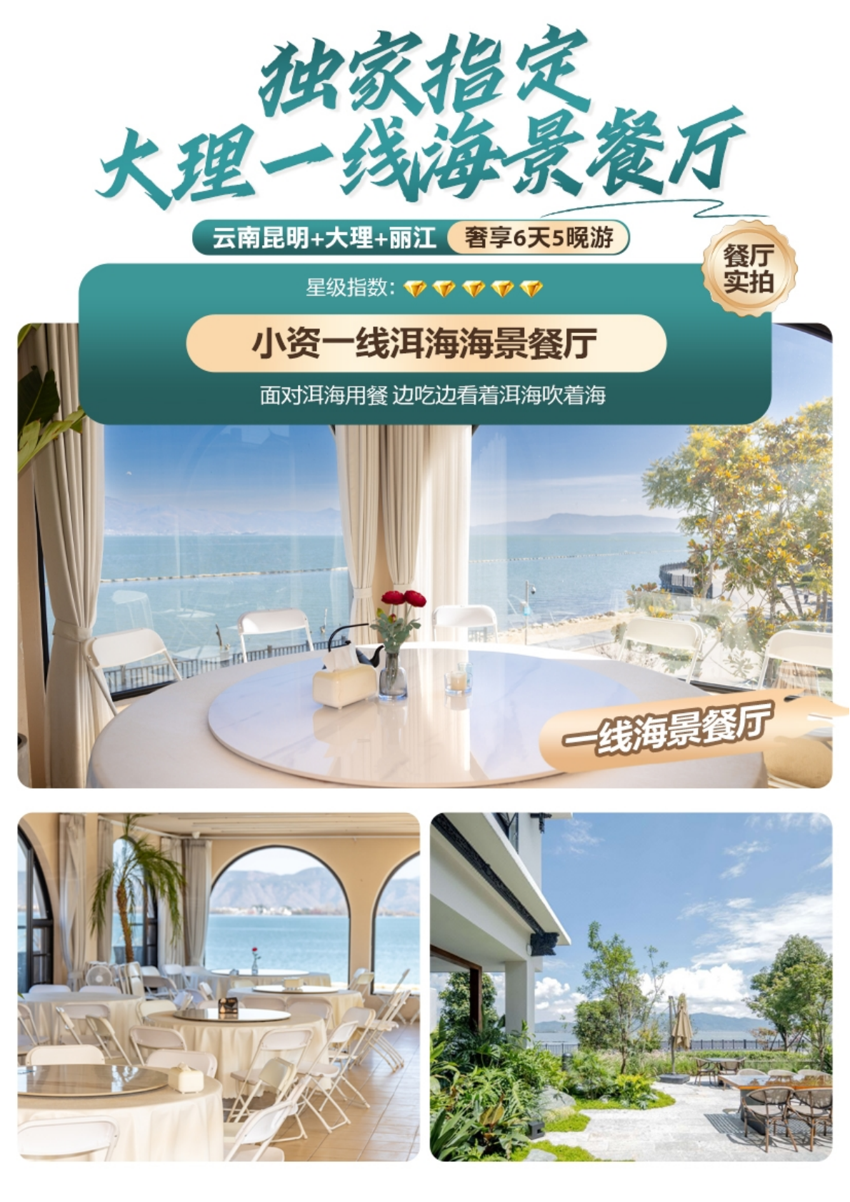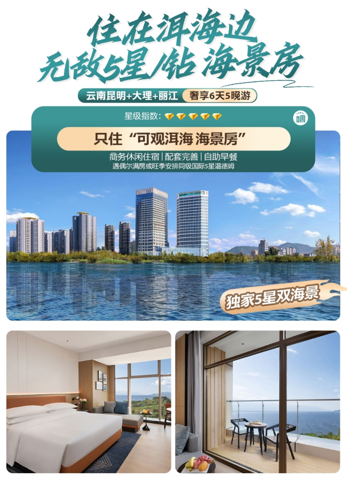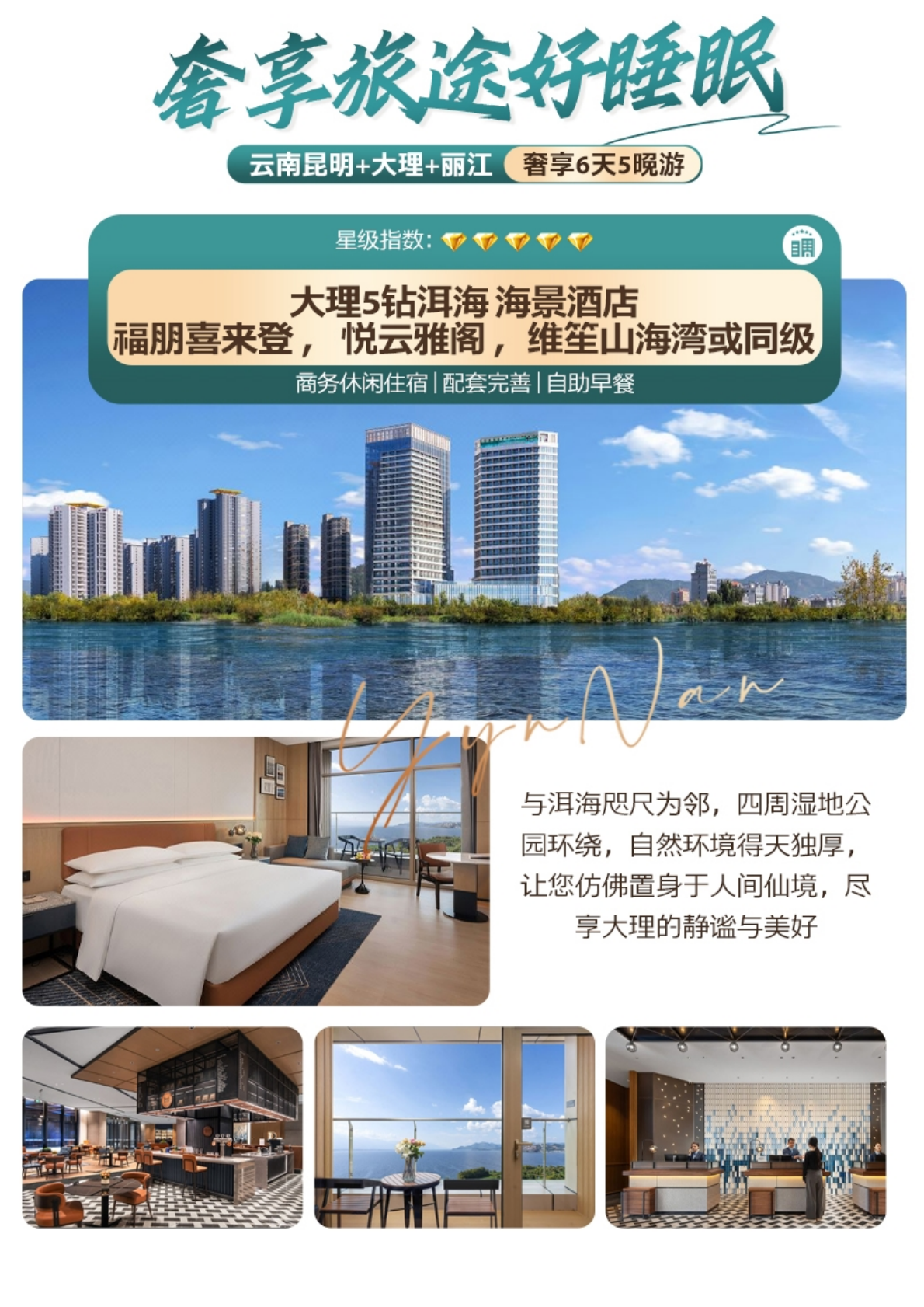 酒店参考:大理5钻海景酒店海景房:悦云雅阁酒店、福朋喜来登酒店、维笙山海湾酒店或同级;