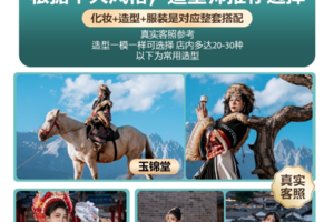 1、丽江古城写真套餐内包含:服装一套+造型打造+精致化妆+专业摄影=精修电子照片5张、底片20张/每人。