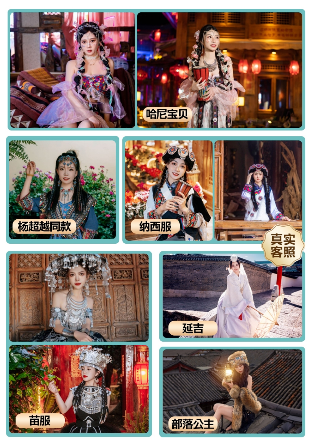 3、海量主题服装任选:500套不同尺码特色名族主题服装任您挑选。